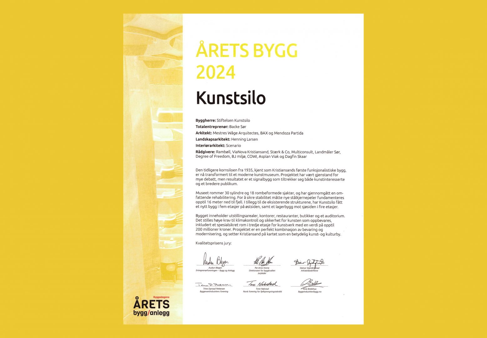 Kunstsilo has been awarded the Building of the Year Prize (Årets Bygg 2024).